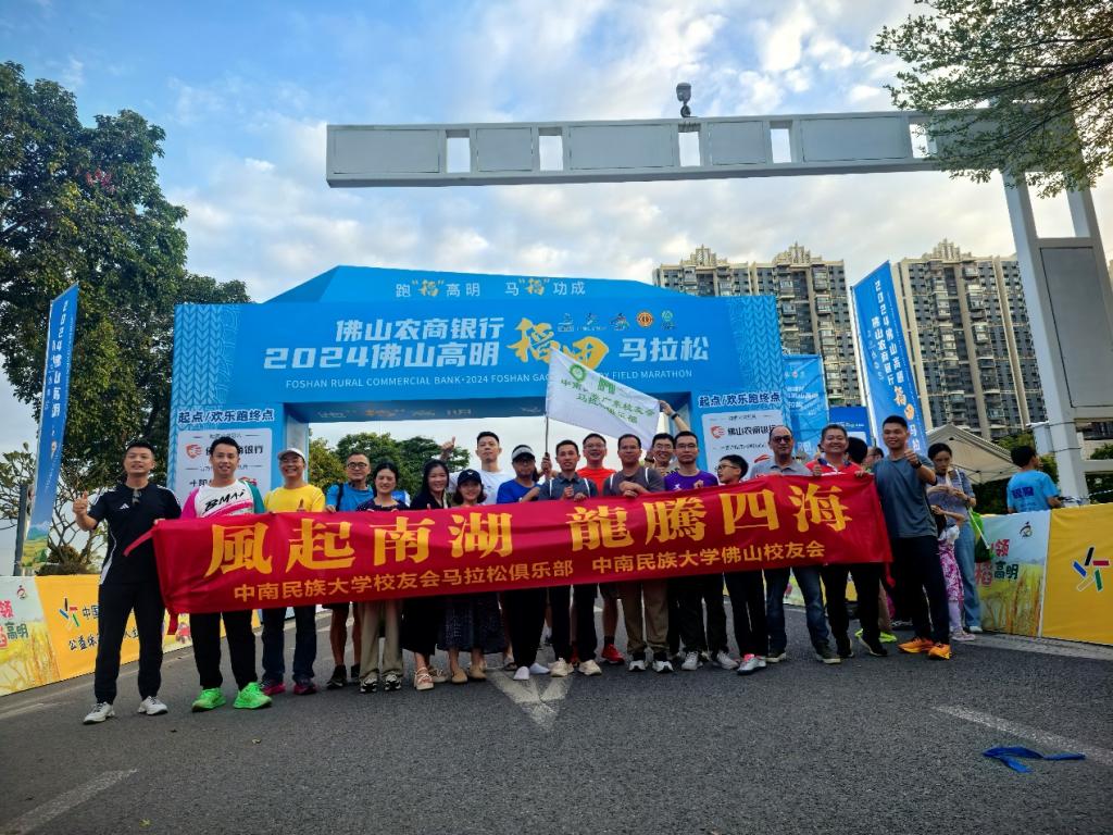 17日6时30分,伴随着清晨的第一缕璀璨阳光与激昂的出发号角,赛事正式开跑,参赛队员以饱满的热情和坚定的步伐,展现了民大人的卓越风采与坚韧精神,穿过出发拱门,向着终点的方向狂奔而去。一路上观众的加油声从不间断,助威的人群各施手段,歌唱、舞蹈等表演目不暇接,佛山特色的武术、醒狮等大显神通。在赛道14.5公里,佛山校友会应援成员早就拉好了横幅,布置好了桌子,准备了饮料和水果小吃等补给,当俱乐部成员通过时,加油打气、呐喊助威,及时递上补给,共同见证了这激动人心的一幕幕。