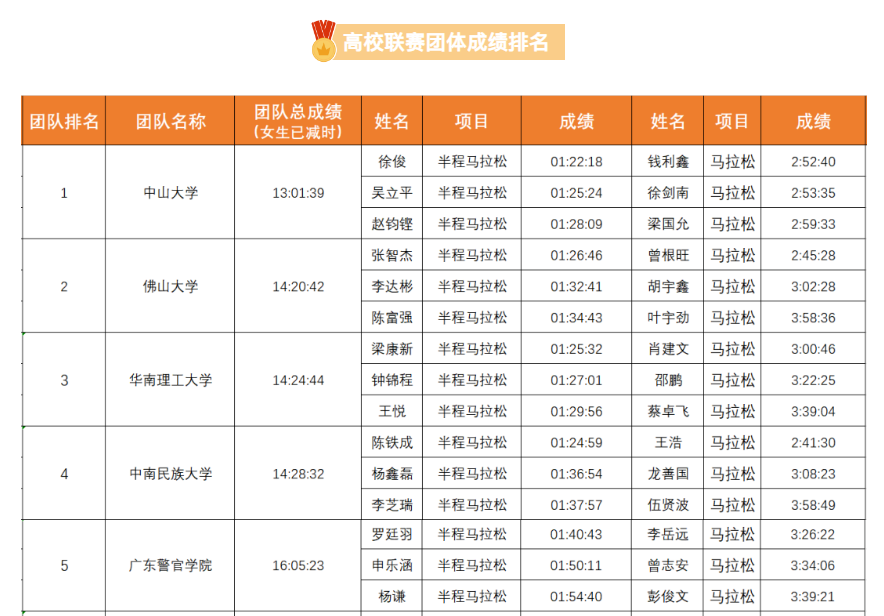 8点后,阳光铺满大地,气温升到了28℃,队员们顶住烈日,扛住高温,摆动手臂,咬紧牙关,仍坚定的向终点冲去。高温使得大部分队员都没能创造出个人最好成绩,但王浩仍然拿下高校联赛个人冠军、赛事全场第五名,龙善国、武贤波、陈铁成、李芝瑞、杨鑫磊等表现非常出色,取得必赢官网友马拉松俱乐部战队全、半马前三名,团体总成绩综合排名高校联赛四名。必赢官网友马拉松俱乐部名头,在南国彻底打响。