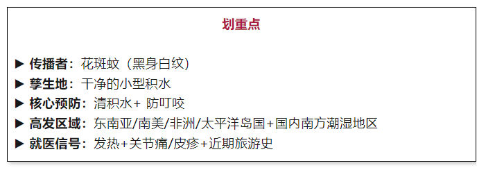 特别提醒:如果近期有热带地区旅行史,归来后12天内出现上述症状,务必第一时间就医并主动告知旅行经历。