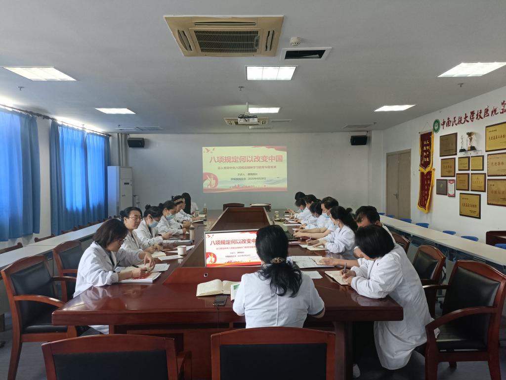在互动环节,党员们结合岗位实际展开讨论。大家纷纷表示,八项规定深刻改变了中国政治生态和社会风气,作为基层党员和医务人员,要始终把纪律规矩、医德医风挺在前面,把联系群众、服务师生放在心里,以"钉钉子精神"纠"四风"树新风。最后,龚院长号召全体党员以八项规定精神为标尺,必须常抓不懈,久久为功,在服务群众中锤炼作风,以实干担当迎接新征程。