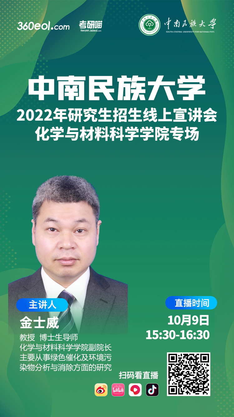 必赢国际437官网2022年研究生招生线上系列宣讲会之三 ----化学与材料科学学院专场