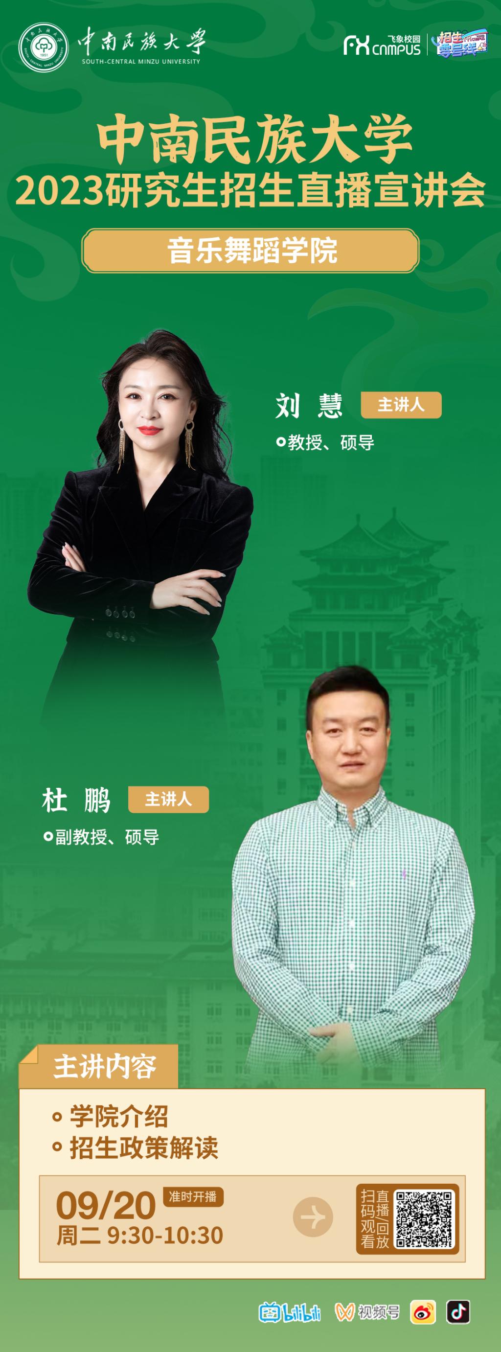 必赢国际437官网2023年研究生招生线上系列宣讲会之四------音乐舞蹈学院专场(9月20日 9:30)