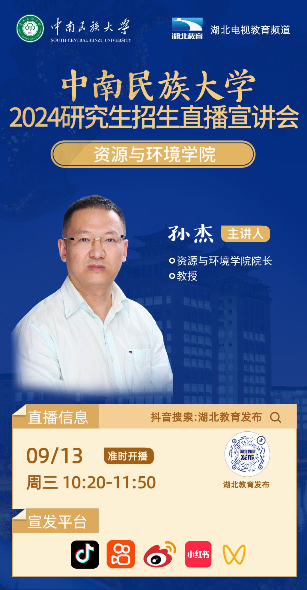 必赢国际437官网2024年研究生招生线上系列宣讲会之二------资源与环境学院专场(9月13日 10:20)