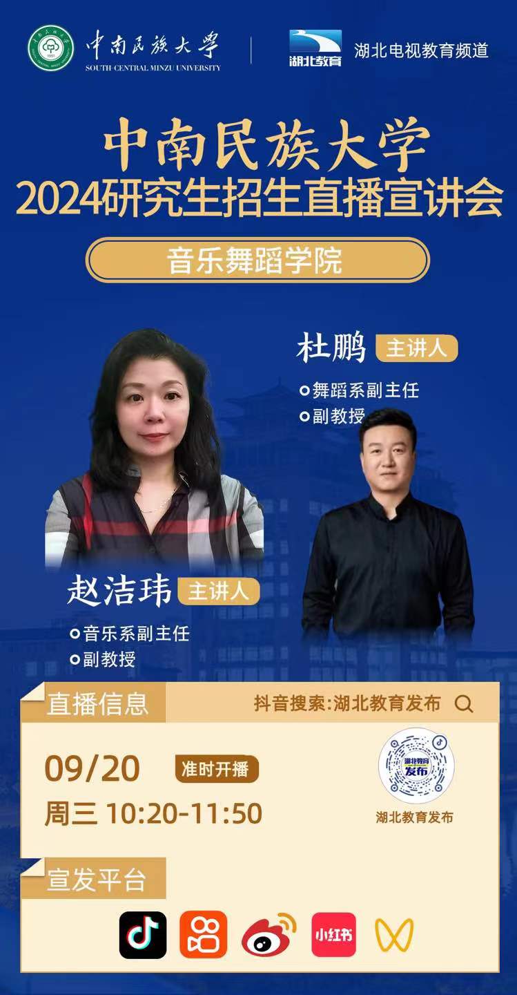 必赢国际437官网2024年研究生招生线上系列宣讲会之八------音乐舞蹈学院专场(9月20日 10:20)