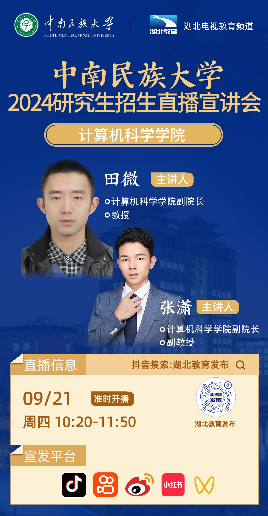 必赢国际437官网2024年研究生招生线上系列宣讲会之九------计算机科学学院专场(9月21日 10:20)