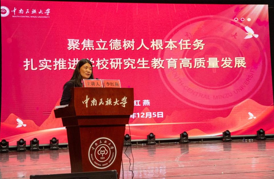 李红燕作了题为《聚焦立德树人根本任务,扎实推进学校研究生教育高质量发展》的报告。她从充分认识研究生导师的育人责任、持续做好研究生的意识形态教育、深入做好研究生的心理健康教育、协同做好研究生的校园安全管理等四个方面,通过丰富详实、生动全面、紧扣时弊的案例材料,形象且深刻剖析了研究生指导工作的内容、重点与方法及导师的职责与要求。