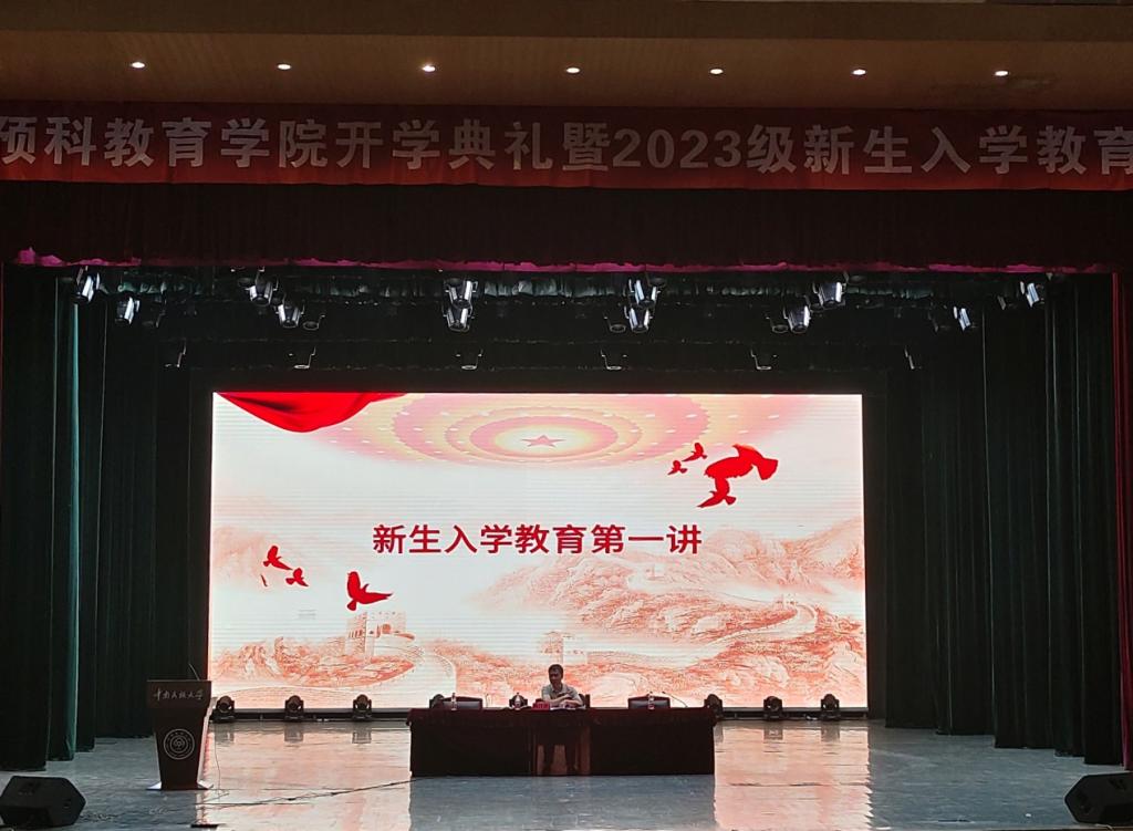 910日上午9:30分,2023级新生开学典礼仪式结束后,预科教育学院党总支书记陈昌华在学校大礼堂以《像石榴籽一样紧紧抱在一起》为题为2023级新生作了第一场入学专题教育。