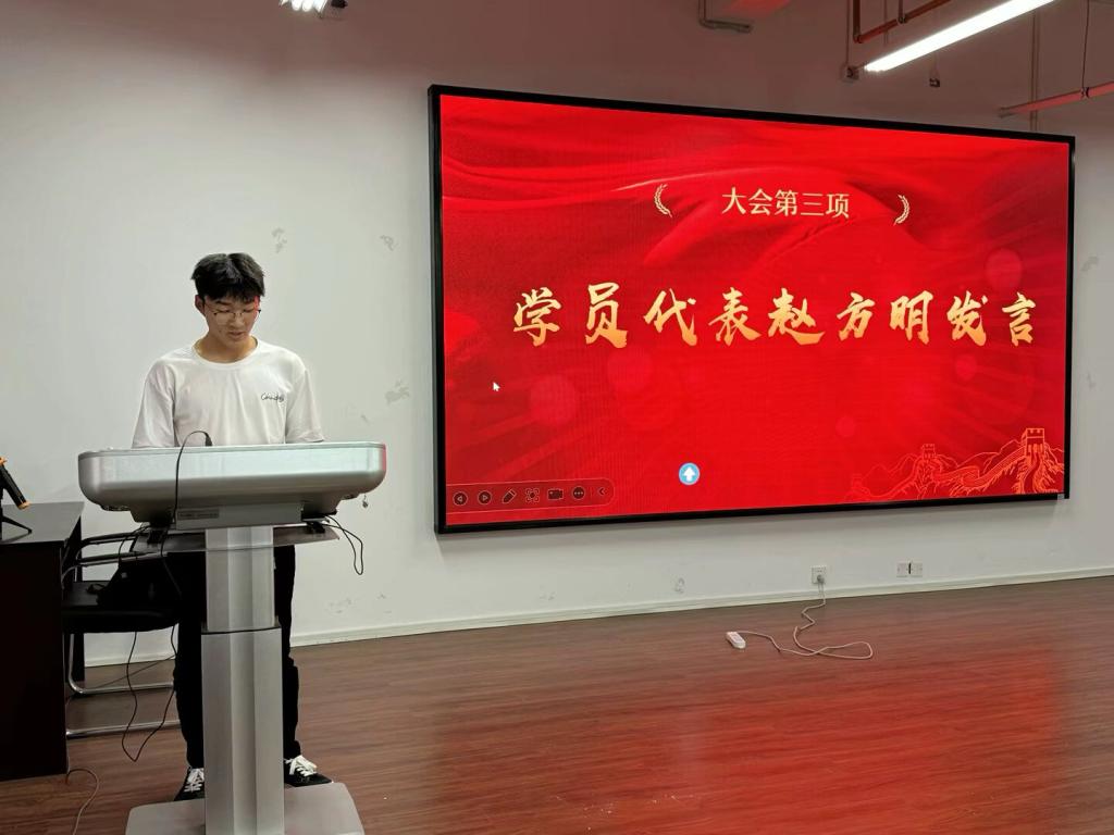 入党积极分子学员代表关皓月、赵方明发言,他们表示要积极参加校内活动,铸牢中华民族共同体意识,端正学习态度,严于律己,发挥模范作用,以实干践行初心使命,推动实现中华民族伟大复兴中国梦。