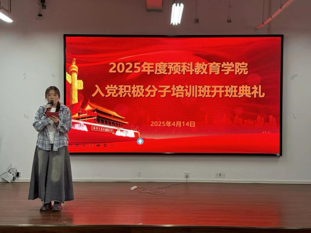 2025414日下午1840,预科教育学院分党校2025年度春季学期入党积极分子培训班开班典礼及党课第一讲《学习党章,实践党章》在17号教学楼304教室顺利举行。预科教育学院党总支书记陈昌华、辅导员玛依拉出席,79位入党积极分子参会,活动由学院学生会组织部主持。