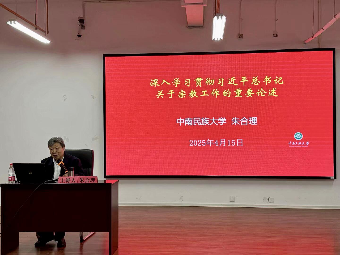 课程伊始,朱合理教授深入讲授《习近平总书记关于宗教工作的重要论述》。他围绕十八大以来党中央对宗教工作的高度重视、新时代宗教工作的 “九个必须”、宗教工作的重点任务以及党对宗教工作的集中统一领导等四个方面展开。朱教授的讲解严谨且深入浅出,帮助同学们,尤其是少数民族同学,全面深刻地认识了我国的宗教政策和党的宗教工作,强化了中华民族共同体意识。他强调,新时代青年需树立正确的宗教观念,远离非法宗教活动,积极维护宗教和谐与社会稳定,促进民族团结。