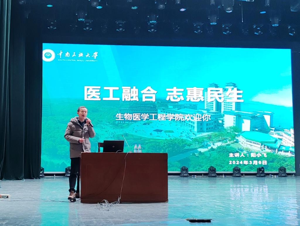 3月6日晚,《必赢国际437官网本科专业介绍》系列讲座第四讲——生物医学工程类本科人才培养与学科前沿进展在学术会堂顺利举行。讲座由生物医学工程学院院长阳小飞教授主讲。预科教育学院党总支书记陈昌华,副书记、院长朱忠熏,副书记李忠贤携2024级全体预科学生参加讲座。