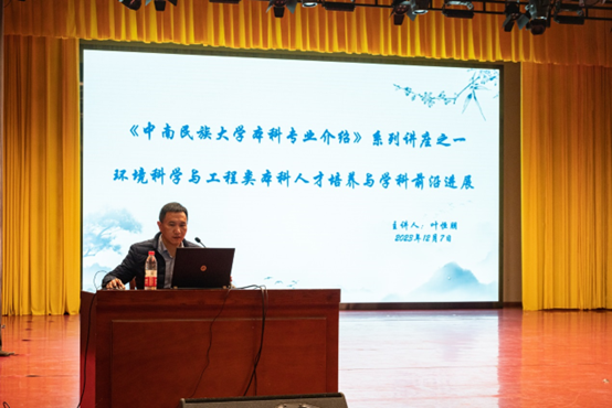 12月7日晚,《中南民族大学本科专业介绍》系列讲座之环境科学与工程类本科人才培养与学科前沿进展在学术会堂举行,讲座由资环学院副院长叶恒朋教授主讲。本次讲座由教务处、资源与环境学院、预科教育学院共同主办。预科教育学院党总支书记陈昌华,副书记、院长朱忠熏,预科学院全体同学以及其他学院部分同学参加了本次讲座。