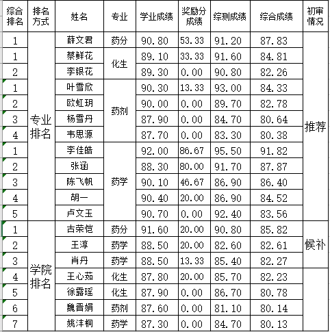 经审核测评,现将我院2023届本科毕业生推免结果公示如下,如有疑议请在9月17日前向学院反映。