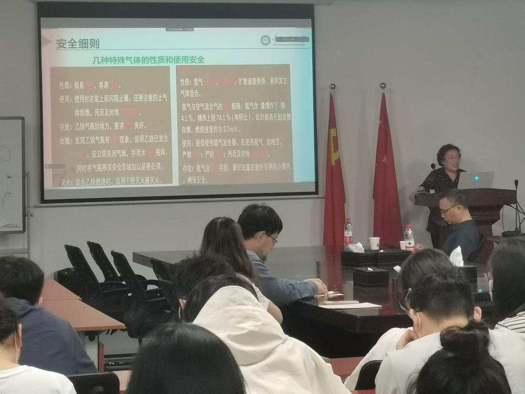 实验室安全无小事!江莹以近年来高校发生的重大实验室安全事故切入,强调安全是一切工作的底线,师生开展实验必须坚持生命至上、安全为先的原则,对自己负责,对大家负责。吴士筠结合自身40余年的实验员工作经历,对实验室安全事故类型、实验室安全管理、急救处理、消防安全、化学危险品安全、气瓶及压力容器使用安全、辐射危害与防护及其他安全问题进行了系统、全面的培训,并以鲜活的安全警示案例提醒同学们要坚持“安全第一预防为主”的方针,认真做好安全隐患的排查与整改。同时针对药学院实验室相关的安全问题,如危险化学品的采购管理、气瓶管理、实验室安全防护品、特种设备操作规程、危险化学品柜操作及制度建设、废液管理及处理等进行深入的讲解。