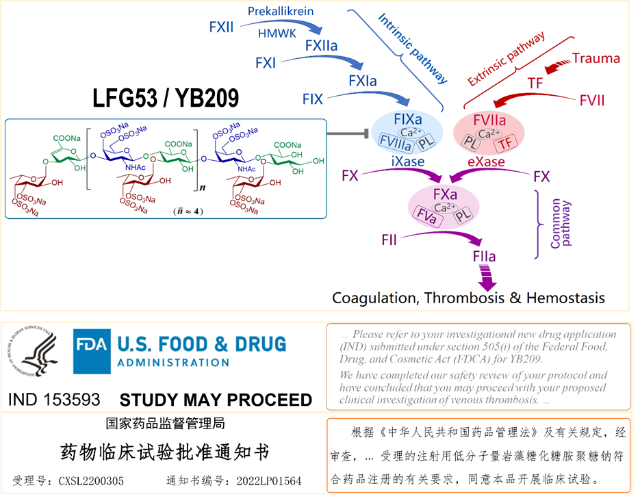 血栓性疾病是全球首位致死病因,抗血栓药是其临床治疗的基石,现有抗血栓药均存在“严重出血风险”的共性缺陷。本项目在低出血倾向抗凝药物研发中取得系列原始创新和关键技术突破:① 以岩藻糖化糖胺聚糖(fucosylated glycosaminoglycan, FG)为先导化合物,通过半合成技术制备一系列FG寡糖衍生物,首次发现强效和选择性的iXase抑制剂,iXase是内源性凝血途径上的末位和限速酶活位点,是兼具低出血倾向和强效活性的优选抗凝药物靶点;据此研发了国际上首个获准进入临床研究的iXase抑制剂类抗凝新药(First-In-Class, FIC)LFG53。与“金标准”抗凝药依诺肝素相比,LFG53的突出优势是出血倾向显著降低。② 首创糖苷键选择性的解聚技术,突破FG确切结构解析的技术屏障,首次清晰呈现FG确切结构,澄清了盘亘数十年的FG结构的学术疑问;构建了特点鲜明的天然纯品寡糖化合物库,为基于纯品寡糖化合物的活性筛选、构效关系分析以及新药发现奠立了坚实的基础。③ 以国际主流技术标准逐项创建了一系列非专利技术,成功逾越糖类药物成药性相关的技术壁垒,促成LFG53成功进入临床研究;通过抑制靶蛋白的分子机制分析、凝血酶生成特点、选择性凝血途径影响、差异性的血栓和止血功能影响,清晰呈现了LFG53的低出血倾向的优势特点及其药理学机制。