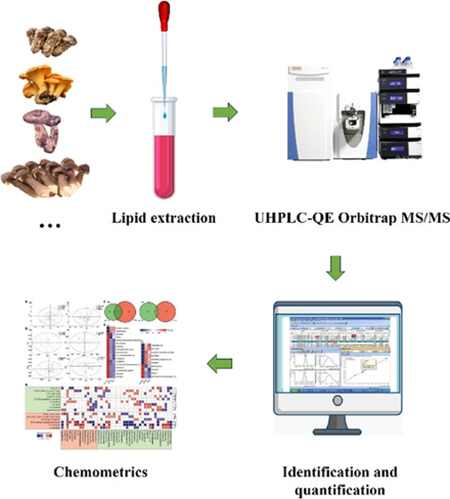 该研究基于超高效液相串联高分辨率质谱技术的脂质组方法分析不同野生真菌中的脂质分子特征并精准定量,首次系统地阐明了八种珍贵可食用野生真菌的脂质轮廓。同时,结合PCA,PLS-DA等化学计量学的方法筛选出不同野生真菌中的差异脂质分子作为区分鉴别不同野生真菌种类的潜在生物标志物。该研究从脂质组学角度为鉴别真菌种类提供了一个新思路。同时,该研究有助于广大消费者更好地了解和评价野生真菌的营养价值。
