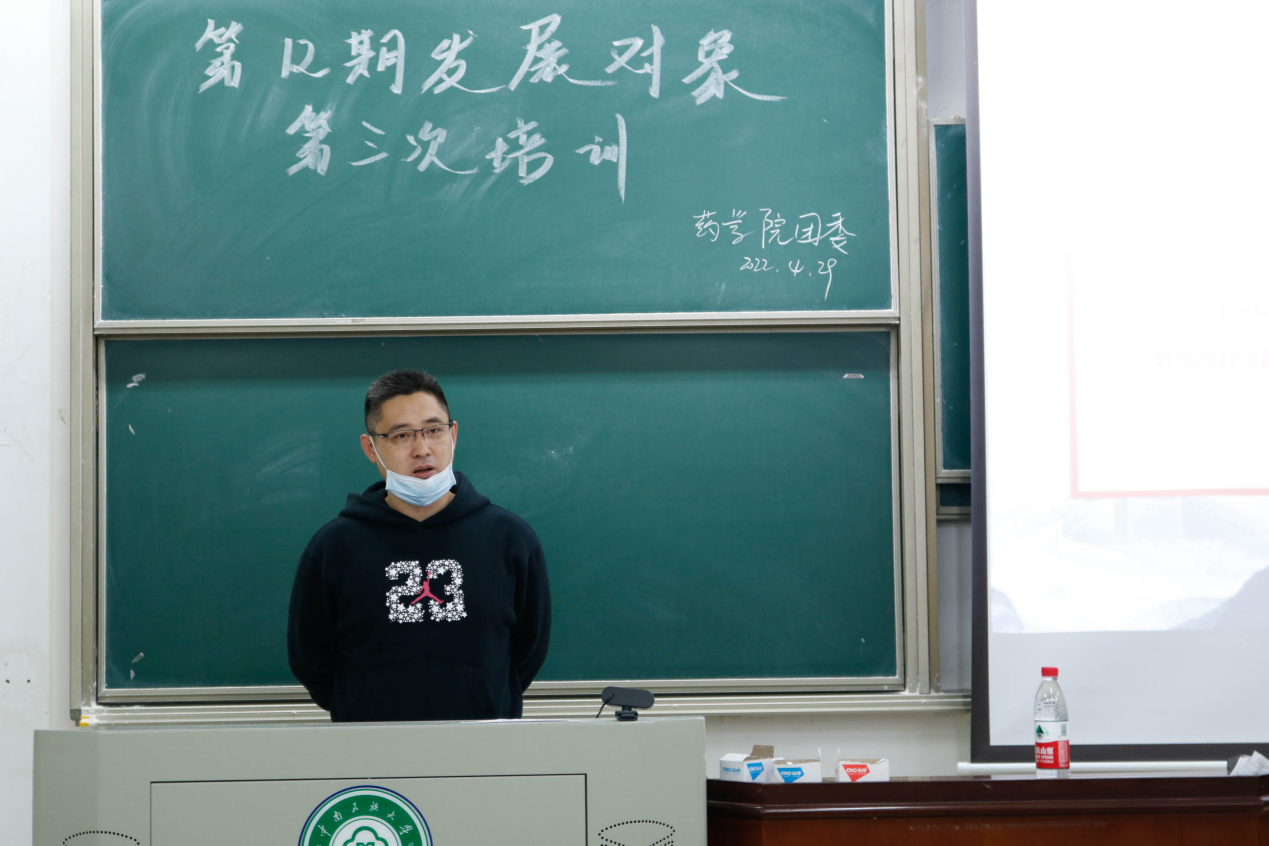 4月29日,药学院在11-307教室举办第十二期发展对象培训班第三次授课,由保卫处处长杨涛老师主讲、药学院全体发展对象参加。