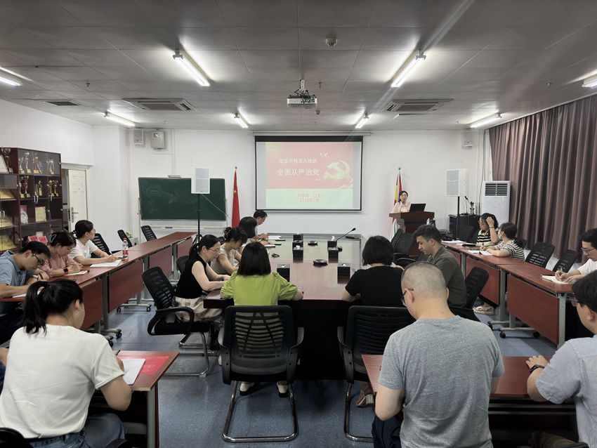 为进一步落实学习贯彻习近平新时代中国特色社会主义思想主题教育要求,不断深化对全面从严治党深远意义的理解,7月5日下午,院党委书记江莹以《坚定不移深入推进全面从严治党》为题讲授主题教育专题党课。学院全体班导师、党支部书记参加学习。