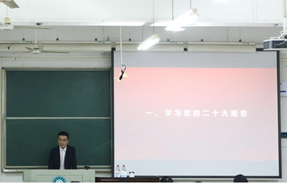 11月4日,院党委副书记吴孔勇进行第一次授课,带领大家学习“党的二十大精神”,他列举出20组民生数据、7个“实现”,对“新时代十年”、“里程碑意义”做出解读,强调新时代十年的伟大变革在对“四史”具有里程碑意义,鼓励同学们立志做有理想、敢担当、能吃苦、肯奋斗的新时代好青年。