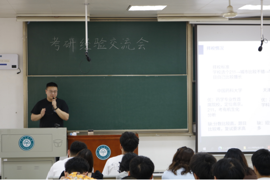 4月20日,药学系在15205教室组织召开考研经验交流会。本次交流会由药学系主任王强老师主持,2020级药学专业本科生参会。
