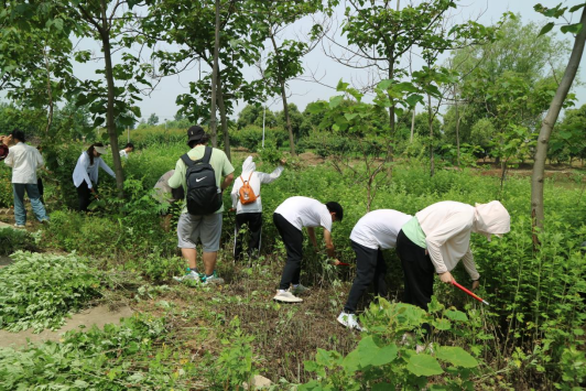 药用植物园谷少武老师向同学们讲解了园内药用植物的整体情况以及栽种过程,介绍了多种药用植物的形态特征、药用部位、药用价值等相关专业知识,指导同学们辨认药用植物和杂草,讲解当季药用植物艾蒿和桑树。现场,谷少武老师还教同学们拔除杂草、收割艾蒿、采摘桑葚,鼓励同学们将理论知识应用到实践中。