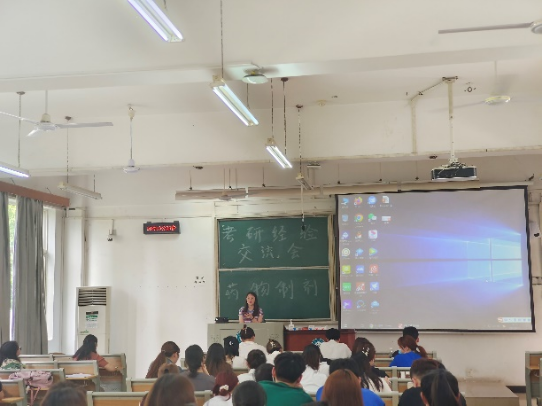 会上,刘浩天、刘聪、肖丹、王佳佳等4名考研成功的毕业生就考研院校选择、备考方法、复习策略及心态调整等方面进行交流与分享,陈旅翼、任永申两位老师为考研学生现阶段如何合理规划和精准定位等问题提供了具体的实施方案和策略。