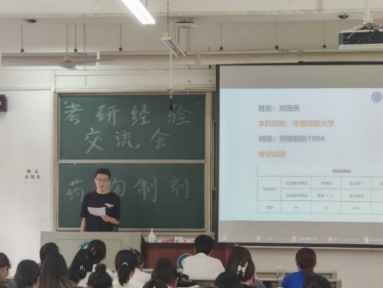 药物制剂系始终将学习经验交流会和考研经验交流会纳入到人才培养的例行工作中,每年4-5月份组织优秀毕业生面向低年级同学开展考研经验交流会, 10-11月开展由保研学生主讲的学习经验交流会。这些活动的开展取得了良好的效果,为药物制剂专业学生就业及升学奠定了良好基础。