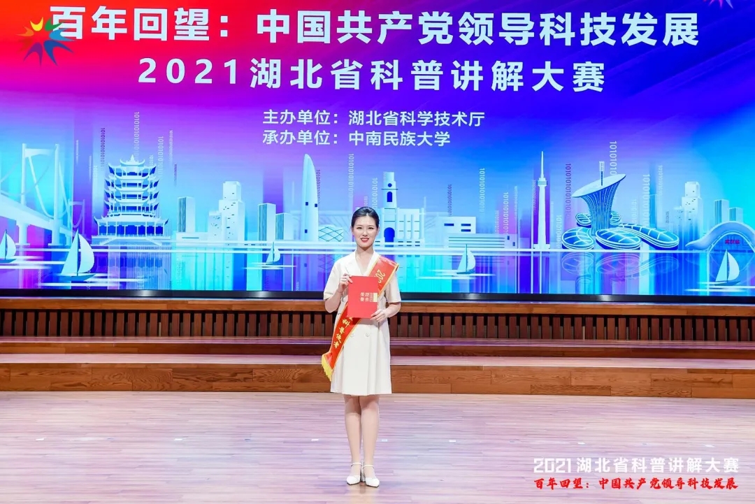 7月10日,由湖北省科学技术厅主办、必赢官网承办的2021年湖北省科普讲解大赛决赛在光谷音乐厅举行,大赛以“百年回望:中国共产党领导科技发展”为主题。药学院2019级药学专业本科生李佳皓参加决赛,获得省二等奖和“2021湖北省十佳科普使者”称号。