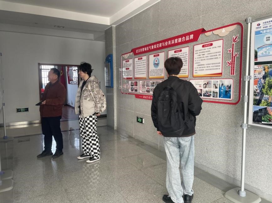 实践小队在蔡甸气象局,聚焦武汉因市区面积过大和监测站过小的情况,造成市区气象监测精准度和稳定度不足的难题,因地制宜探讨改进方案。在此次实践活动中,同学们与当地科研院所展开交流对话,深入了解气象局监测的“三基:地基、天基、空基”,和当前国内的天气监测算法和国际上天气监测算法的差别,以及武汉市降水“以点带面”的监测手段,总结武汉市天气监测和预报的不足之处,为武汉更加精准的天气预报提出建议和方案,努力贡献一份青春力量。