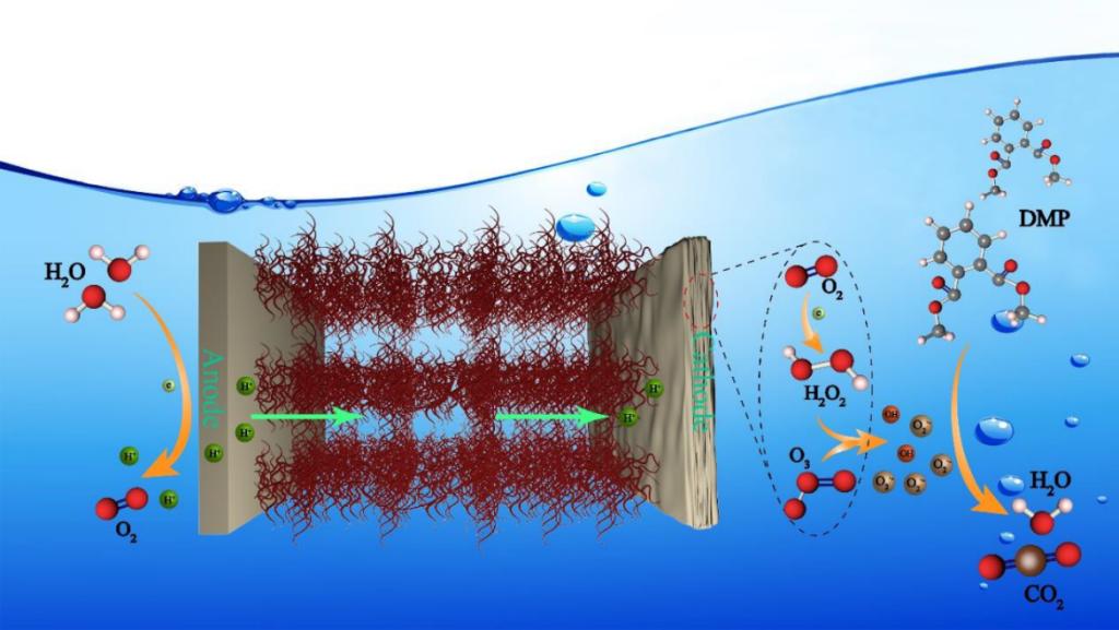 塑化剂是工业上被广泛使用的一种高分子材料助剂,用于提高塑料等材料的柔韧性和易加工性。邻苯二甲酸酯类是最常见的塑化剂,难以自然降解,具有生物累积性和内分泌干扰效应,大量摄入可造成发育障碍。电过氧化技术(Electro-peroxone,EP)被认为是一种有应用前景的水处理工艺,但在自然水体中的使用受到低电导率和高运营成本的限制。