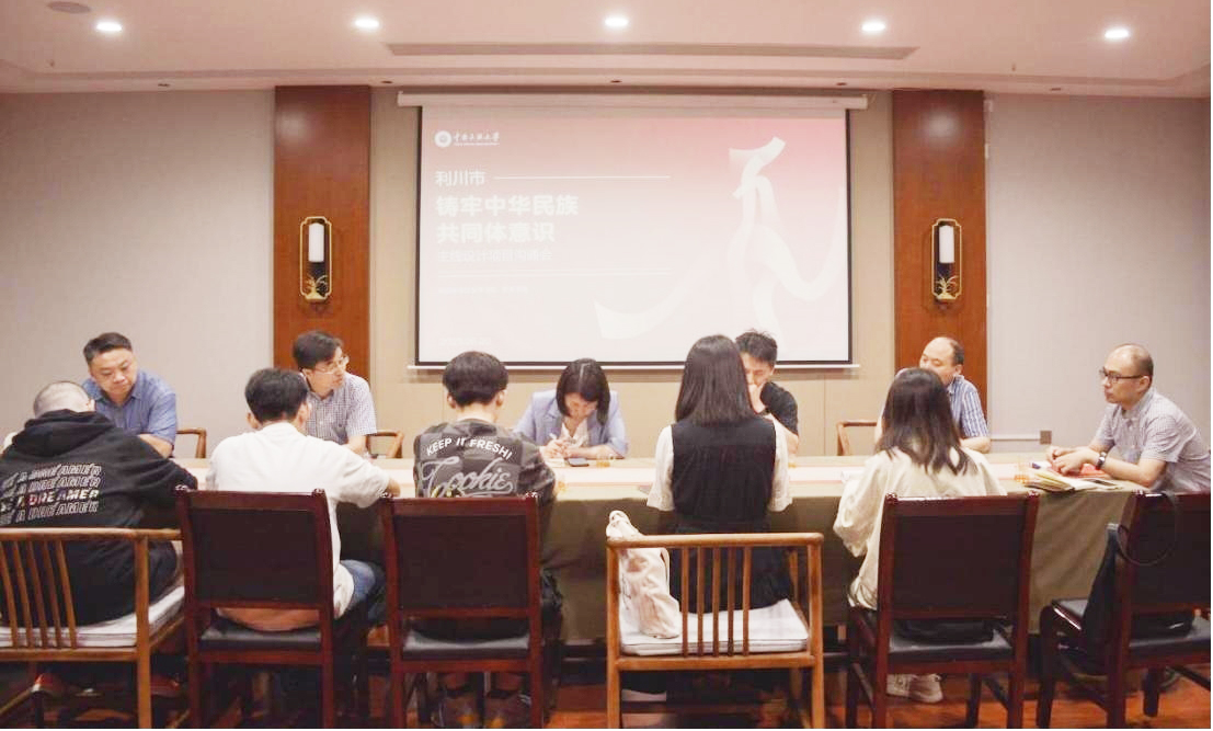 美术学院与民社学院团队师生开展跨学科合作,经过多次调研,深度挖掘利川市铸牢中华民族共同体意识资源,与利川市民宗局、星斗山利川红展厅、腾龙洞景区方面多次交流,于7月精心编制了《湖北省利川市铸牢中华民族共同体意识主题线路设计方案》。该方案将中华文化符号、利川市历史文化、利川市民族团结进步成就以及当代城市形象有机结合,为利川市城市道路景观、星斗山利川红公司、腾龙洞5A级景区3个关键点位撰写铸牢中华民族共同体意识系列文案,开展铸牢中华民族共同体意识视觉设计。