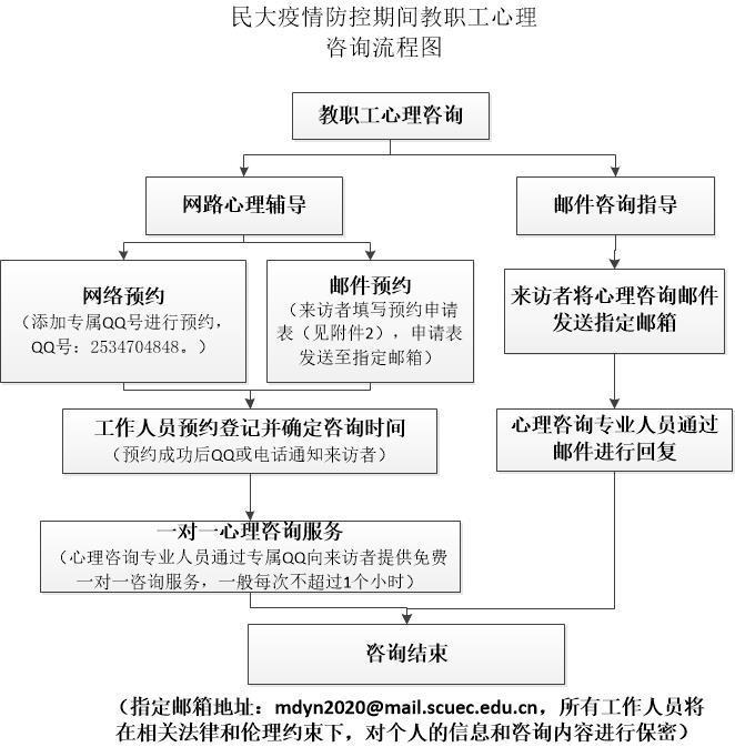 附件1.民大疫情防控期间教职工心理咨询流程图(流程图如下)