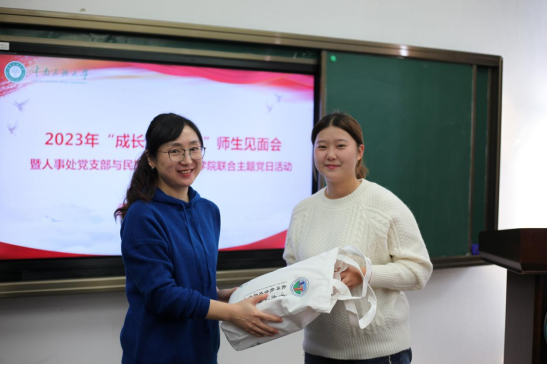 12月21日上午, 教工部、人事处党支部与民族学与社会学学院联合主题党日活动暨2023年“成长守望”计划师生见面会在教师教学发展中心学术活动室740召开。校党委教师工作部部长、人事处处长江莹,人事处党支部全体党员,民社学院党委书记钱文彬,民社学院行政党支部党员及“成长守望”计划入选学生参与本次见面会。民社学院党委副书记王璐璐主持见面会。
