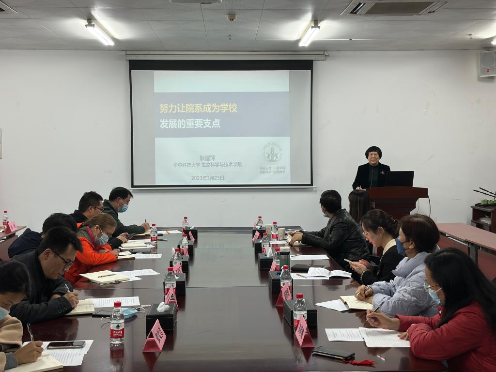 会上,华中科技大学生命科学与技术学院原党委书记耿建萍作了题为《努力让院系成为学校发展的重要支点》辅导报告。她围绕“充分发挥基层党组织的战斗堡垒作用”主题,详细介绍了首批“全国党建工作标杆院系”的特色做法和有益探索,强调学院在建设过程中,要充分发挥党组织的作用,搭建团结务实的领导班子,营造宽松团结向上的良好氛围。报告主题鲜明、内容详实、理论深厚、案例丰富,对进一步提升各级党组织书记履职能力和业务水平,具有很强的针对性、指导性和实效性。