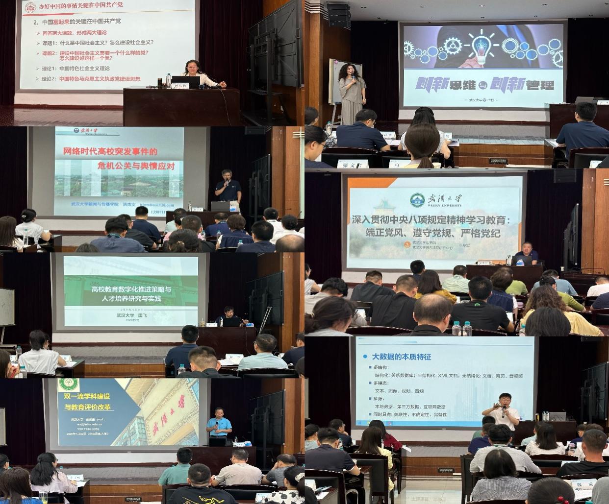 理论铸魂,赋能管理实践。本次培训邀请武汉大学赵雪梅、洪杰文、唐飞、巫世晶、杜莉、伍华军、李石君等专家学者围绕党建引领学校事业高质量发展、危机公关与舆情应对、教育数字化与人才培养、“双一流”建设与教育评价改革、中央八项规定精神学习教育、AI赋能管理工作等前沿主题进行专题授课,通过政策理论精讲、典型案例剖析、实践路径推演相结合的方式,为学员精准解读前沿政策、系统阐释方法工具,助力参训干部把握高等教育发展大势,拓宽管理视野与工作思路。参训学员龙华、樊晓阳、吴雪姣、张俊等人表示,理论课程紧贴学校发展需求,面对新形势新挑战,必须不断提升应急处置能力、深化数据驱动育人与智能治理理念、拓展创新思维格局,并强化服务学校战略发展的行动自觉。